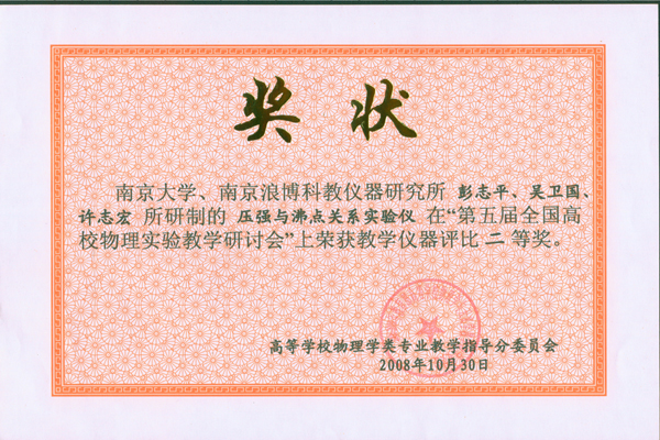 LB-PB压强与沸点关系实验仪 荣获 第五届全国高等教学物理实验优秀教学仪器评比二等奖